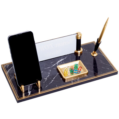 Cosmo Ofis Masa İsimliği 31 cm x 16 cm Ebatında ve Ahşap Malzemeden üretilmektedir. Ürün üzerinde yer alan aksesuarlar altın renk saten kaplamalı plastik malzemeden üretilmektedir.