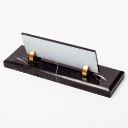 %100 Doğal Mermer'den üretilen Rota Masa İsimliği tasarımıyla masalarınıza şık bir görüntü kazandıracaktır. Mermer siyah renkte olup isimlik üzerine altın renkli aksesuarlarla dekore edilmiştir, ürün rengiyle masanıza ve ofisinize prestij katacaktır.